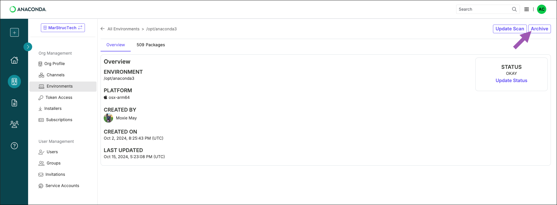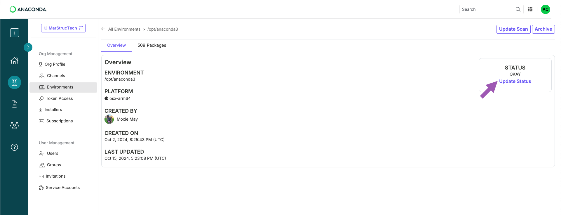 Environment logging and scanning requires the following:- An Anaconda.com account