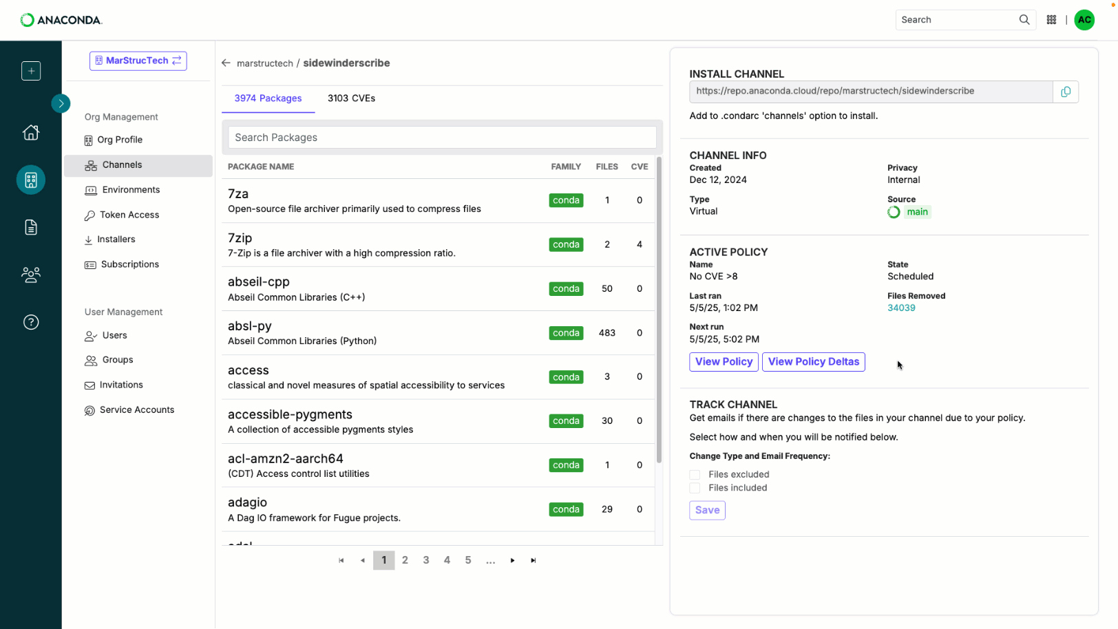 In some cases, the exclusion parameters of a policy filter might inadvertently remove packages (or dependencies) that are critical for production projects. The override filter allows administrators to add these specific packages back to the channel.You can apply overrides using conda spec and CVE Status.Be cautious when using overrides based on CVE Status! Packages contain multiple files, and each file can be associated with different CVEs. For example, let’s say you’ve set up a policy that excludes packages with a CVE Score of 8 or higher, or that have an Active CVE Status.Now, suppose that there is a package that contains a file that’s associated with an active CVE that has a score of 9.0, while another file in the same package is associated with a different CVE that has been cleared.If you override the policy to allow packages with a cleared CVE status to be pulled back into the channel, all files for that package are added back to the channel, even though one of the files is associated with an active CVE and the score exceeds the CVE score threshold you set for the policy. Because most packages contain files that are associated with CVEs that have been cleared, this can result in files that are not compliant with your security policy being added back to the channel.