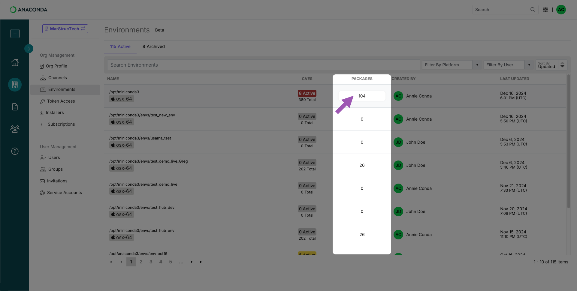The environment’s Packages page shows you which packages are in an environment and what they were sourced from.- Navigate to your Organizations page.