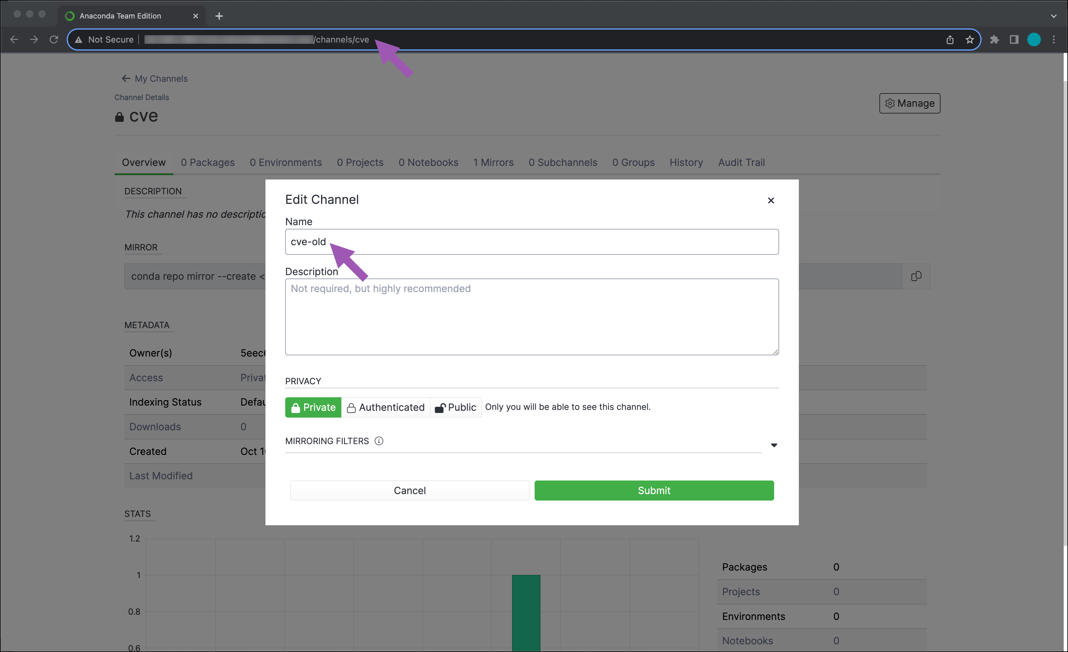 Rename the CVE channel by navigating to the following path, clicking edit, and renaming the channel: